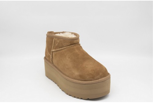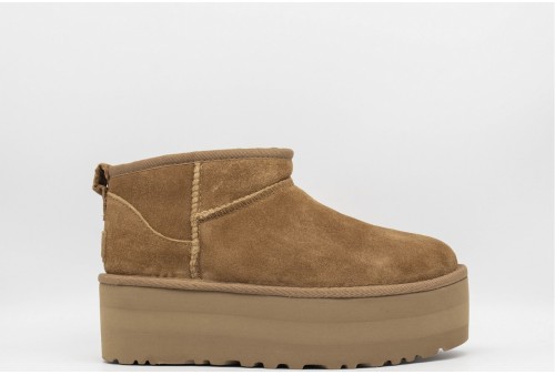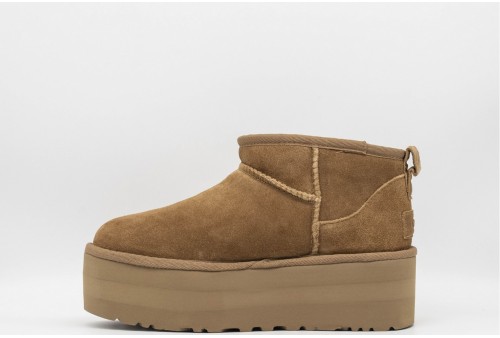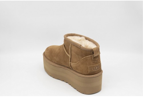 UGG Stivali Con Plateau Classic Ultra Mini. Questa interpretazione moderna della nostra icona Ultra Mini raggiunge nuove vette grazie a un plateau da 5,1 cm che slancia la gamba. Con un look più audace che mai, è realizzato con lo stesso pregiato camoscio dell’originale e con il nostro misto lana UGGplush™ per la classica morbidezza. Questo prodotto poggia su una suola SugarSole™, realizzata con un composto responsabile a base di schiuma di canna da zucchero, che ci consente di ridurre la dipendenza dai combustibili fossili sostituendo l’etilene a base di petrolio, o su una suola Treadlite by UGG™.
