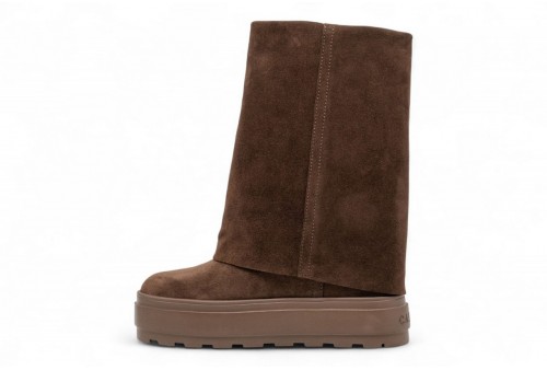 CASADEI Stivali New Double Face. Lo stivale reversibile di Casadei vi dà la possibilità di indossare lo stesso modello con due funzioni diverse. La tomaia in morbida pelle di vitello scamosciata può essere indossata risvoltata, per un tocco speciale ai vostri jeans skinny, o come stivale morbido, per completare il look di abiti fruscianti. La comoda zeppa interna garantisce stabilità e praticità, mentre la suola in gomma carrarmato assicura aderenza.COLORE CACAO