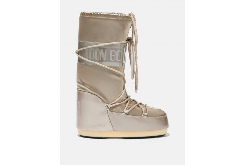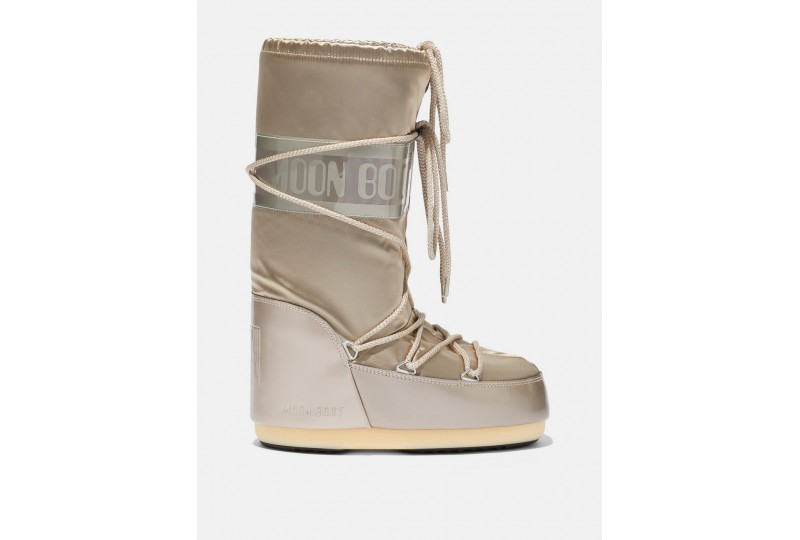 MOON BOOT ICON GLANCE PLATINO IN RASO. Non è tutto oro quel che luccica... a volte è un Moon Boot in raso. Ispirato all'atterraggio lunare del 1969, l'Icon Glance è realizzato con la stessa tecnologia del modello originale e non ha nulla da invidiare alle calzature indossate dagli astronauti. È dotato di una suola antiscivolo che garantisce la massima presa e di un’imbottitura isolante che tiene il piede caldo e asciutto in ogni condizione climatica.