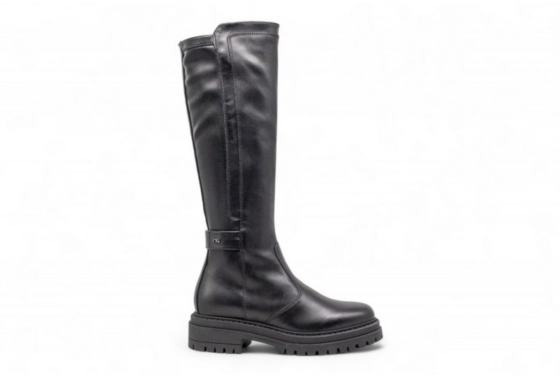 NERO GIARDINI stivale in pelle. Stivale realizzato in pelle. Dettaglio fibbia laterale.Chiusura con zip su tutta la lunghezza. Fondo in gomma dentellato. COLORE: nero