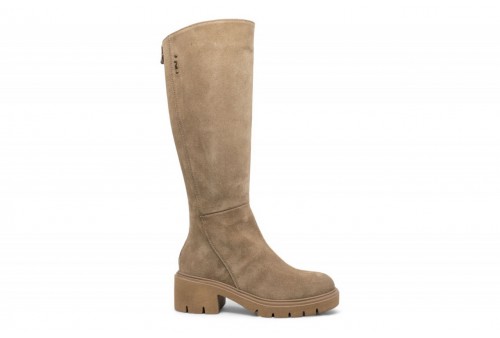 NERO GIARDINI stivale in pelle scamosciata. Stivale realizzato in pelle scamosciata. Logo in metallo.Chiusura con zip. Fondo in gomma dentellato. COLORE: argilla