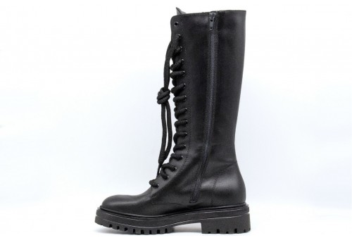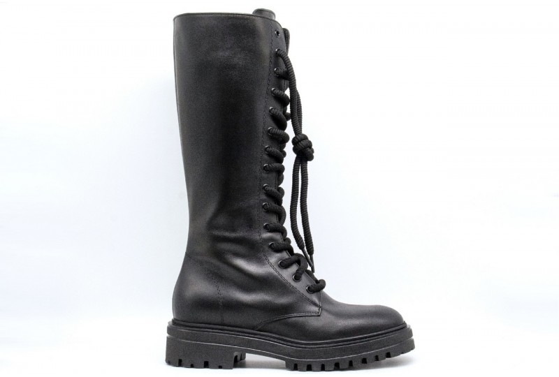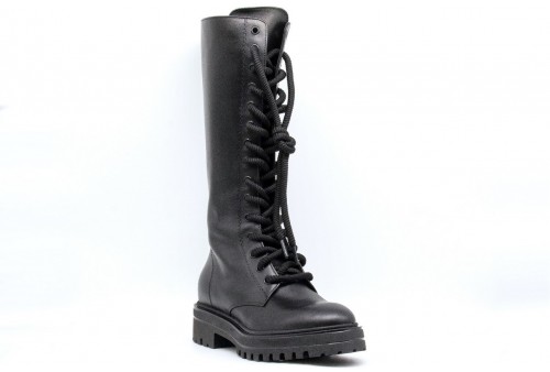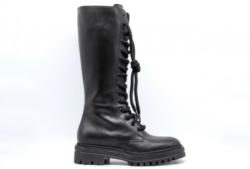 VSL ANFIBIO PELLE NERO. Stivale con stringhe in pelle. Punta rotonda. Fondo carroarmato. COLORE: NERO