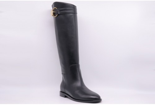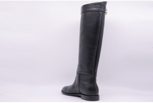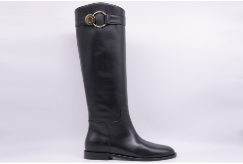 WO MILANO Stivale donna vitello nero. Stivale donna caratterizzato da tomaia in vitello di colore nero con tacco basso e dettaglio sul laterale dorato.