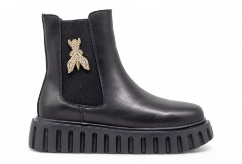 PATRIZIA PEPE STIVALETTO IN PELLE. Stivaletto realizzato in pelle con inserto elastico laterale.Accessorio laterale. Chiusura con zip. Suola in gomma robusta, ideale per un look casual ma curato.COLORE: nero