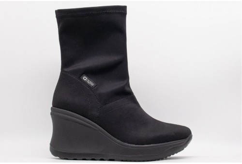 AGILE BY RUCOLINE BRIGITTE BOOTS 182 A LYCRA. Stivale in tessuto sintetico con logo in gomma, zeppa 9 cm e zip sul laterale interno.