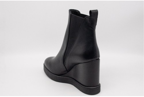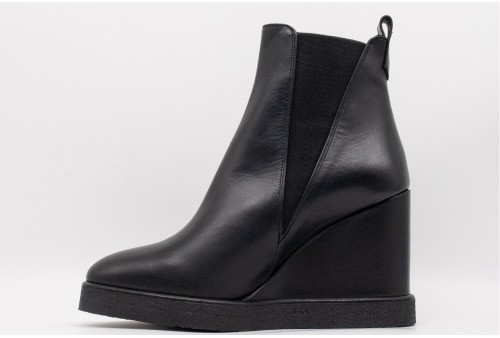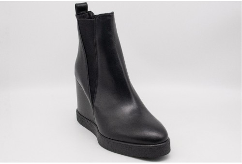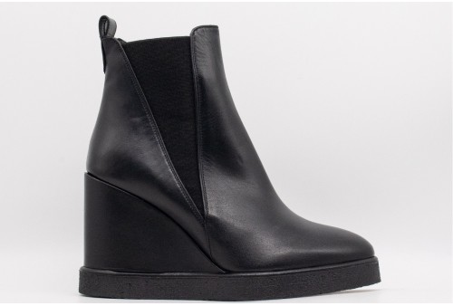 L'AMOUR Tronchetto in pelle. Tronchetto donna con punta rotonda in pelle di colore nero, zeppa ed elastici sul laterale