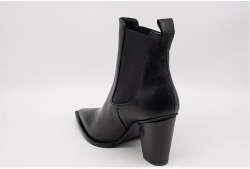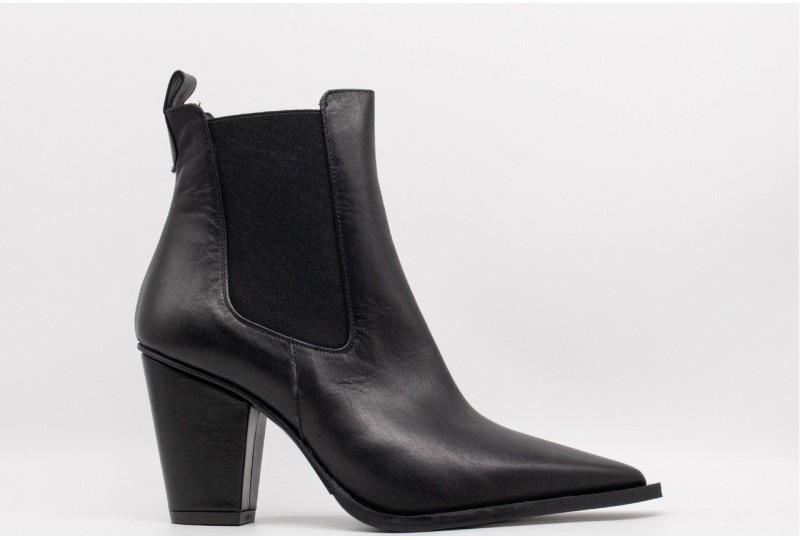 L'AMOUR Tronchetto in pelle. Tronchetto donna con punta in pelle di colore nero, tacco doppio ed elastici sul laterale che ne facilitano la calzata.