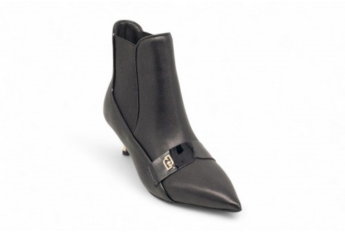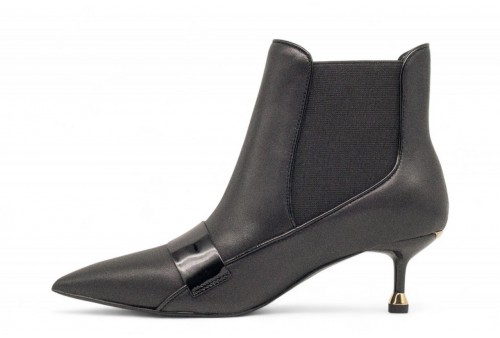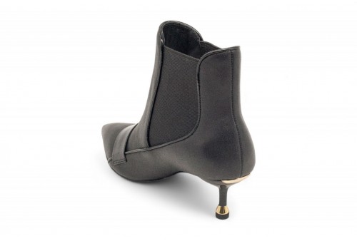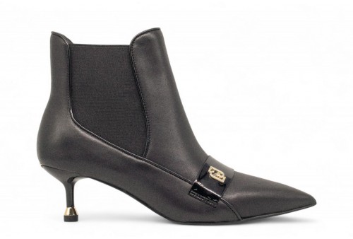 LIU-JO TRONCHETTO A PUNTA BLACK. Tronchetto DEVA in pelle con inserti elastici laterali. Punta affusolata.Tacco  a spillo. Dettaglio metallizzato sul fondo che offre maggiore comfort ad ogni passo. Accessorio logato sul dietro.