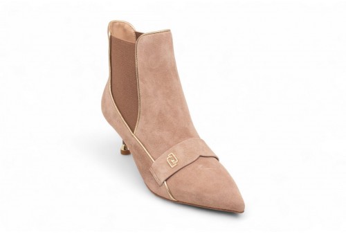LIU-JO TRONCHETTO A PUNTA POWDER ROSE. Tronchetto DEVA in pelle scamosciata con inserti elastici laterali. Punta affusolata.Tacco a spillo. Dettaglio metallizzato sul fondo che offre maggiore comfort ad ogni passo. Accessorio logato sul dietro.