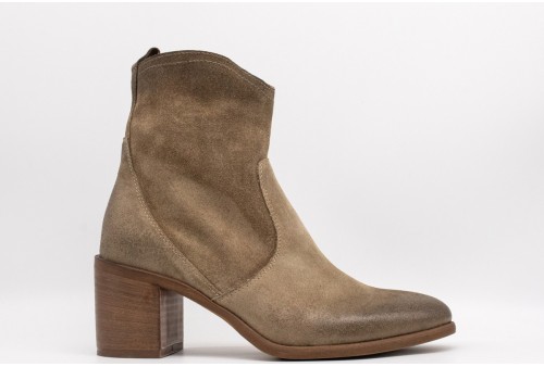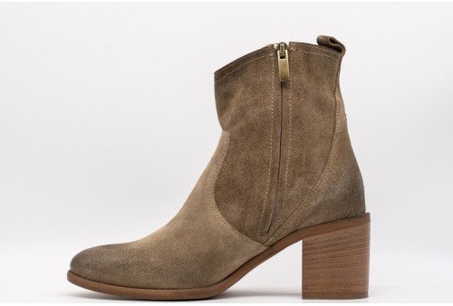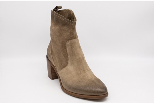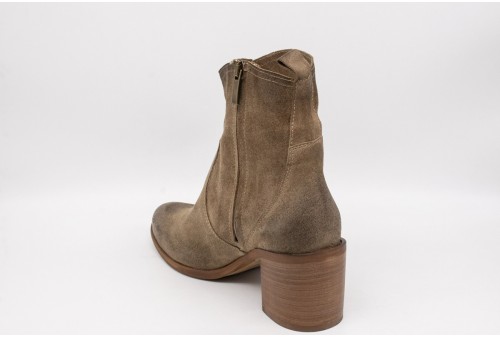METISSE EL771 INGRASSATO TORTORA. Stivaletto corto donna caratterizzato da tomaia in morbida pelle scamosciata colore tortora, tacco a blocco e zip sul laterale interno.