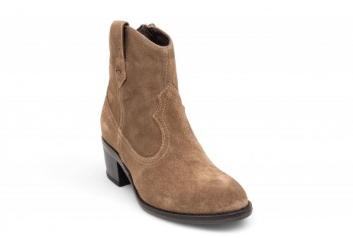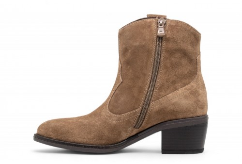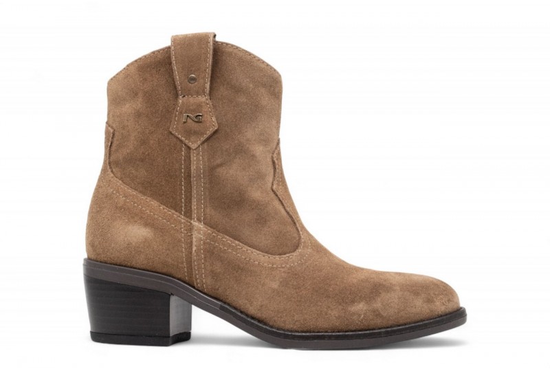 NERO GIARDINI camperos in camoscio. Tronchetto realizzato in pelle scamosciata. Cuciture tono su tono. Tacco a blocco. Fondo in gomma . COLORE: mou