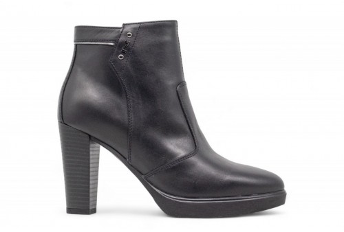 NERO GIARDINI tronchetto con tacco. Tronchetto con tacco a blocco realizzato in pelle . Dettaglio logo laterale. Cuciture tono su tono. Fondo in gomma . COLORE: nero