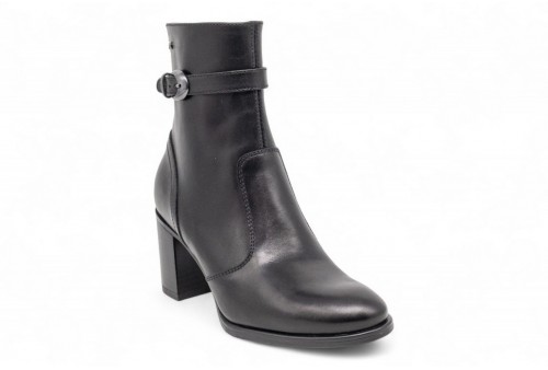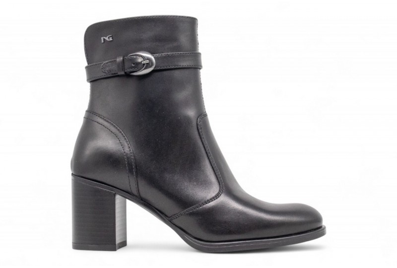 NERO GIARDINI tronchetto in pelle. Tronchetto realizzato in pelle. Impreziosito da cinturinio con fibbia decorativo. Logo. Cuciture tono su tono. Tacco a blocco. Fondo in gomma . COLORE: nero