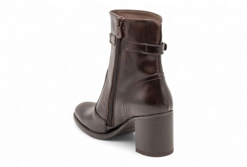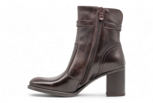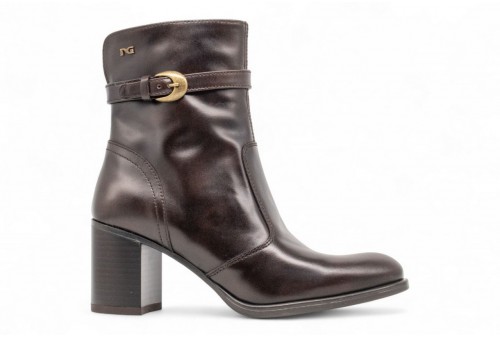 NERO GIARDINI tronchetto in pelle. Tronchetto realizzato in pelle. Impreziosito da cinturinio con fibbia decorativo. Logo. Cuciture tono su tono. Tacco a blocco. Fondo in gomma . COLORE: t.moro