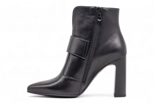 NERO GIARDINI tronchetto in pelle. Tronchetto a punta realizzata in pelle . Caratterizzato da cinturino frontale. Tacco a blocco. COLORE: nero