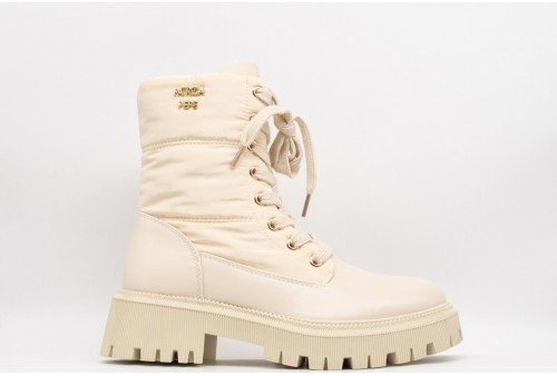 PATRIPIA PEPE Anfibio donna. Anfibio donna del brand Patrizia Pepe caratterizzato da tomaia di pelle e tessuto impermiabile con inserto logo oro. Zip sul laterale interno per facilitarne la calzata.