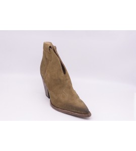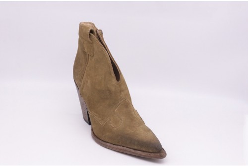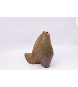 STRATEGIA Tronchetto in velour fango. Tronchetto in velour fango, modello Texano stile vintage con zip laterale con puntale con impunture con cucitura decorativa, suola in cuoio.