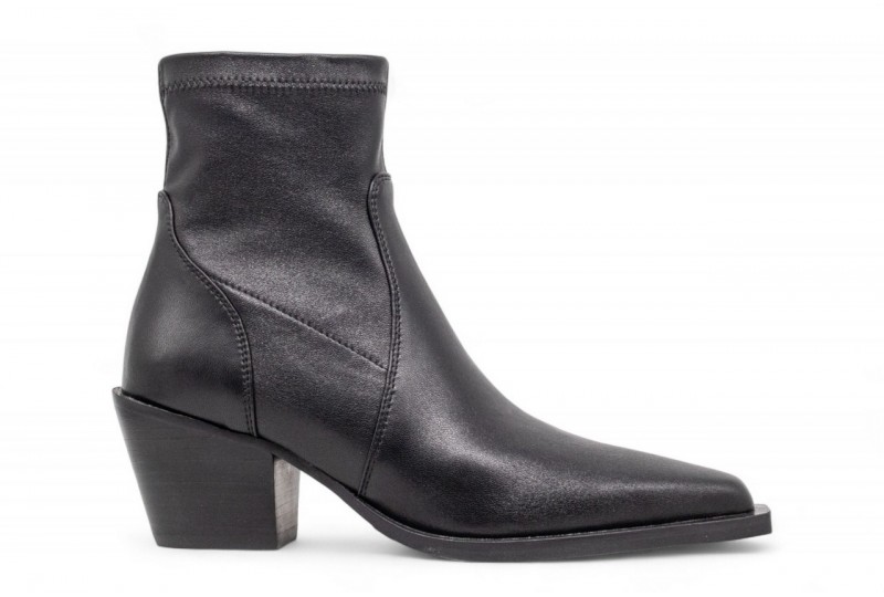 UMA PARKER CAMPEROS ECO LEATHER. Tronchetto a punta realizzato in eco pelle. Tacco a blocco. Fondo gomma. Chiusura con zip laterale. COLORE: NERO