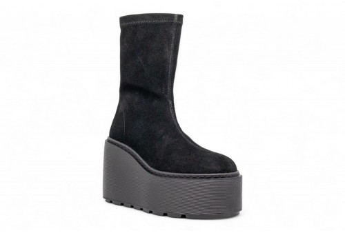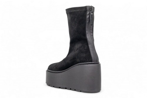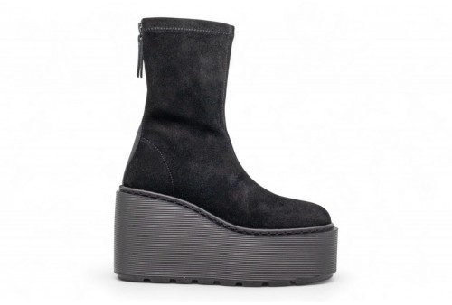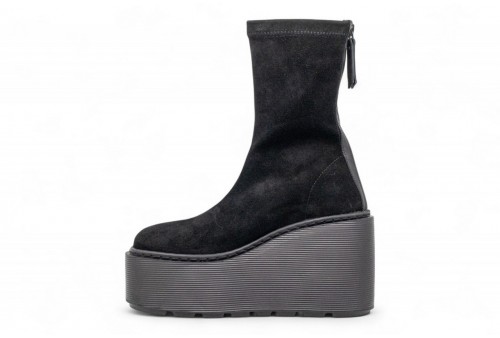 Vic Matie Zeppa Stripy. Zeppa Stripy-Tronchetto zip in crosta elasticizzata ,con zip posteriore tono su tono perlata. Zeppa in gomma effetto rigato, con battistrada a tacche antiscivolo. Made in Italy.
