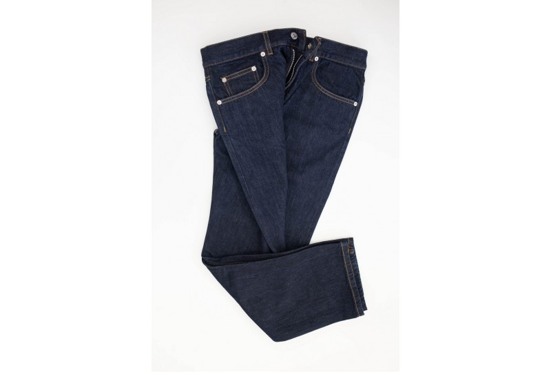 GRIFONI Pantalone Arrow 5 Tasche. Pantalone Arrow cinque tasche in denim di cotone, regular fit, lavaggio scuro, con chiusura a bottone e a zip, passanti per cintura e dettaglio salpa patch sul retro con logo.