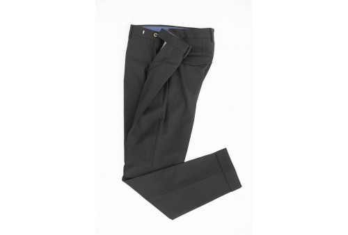 PT TORINO Pantalone uomo in lana vergine. Pantalone uomo in lana elasticizzata con passanti per cintura, chiusura con gancio e zip, due tasche laterali inserite, due tasche posteriori con patta, gamba affusolata.