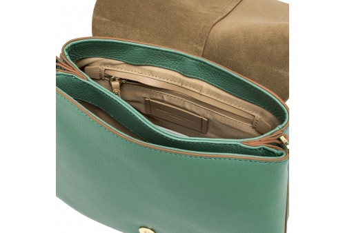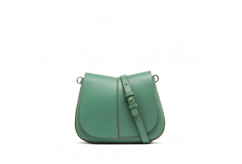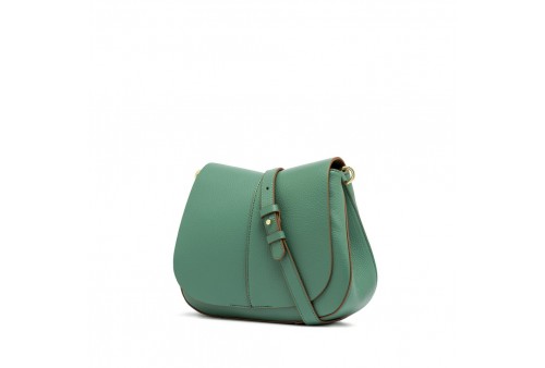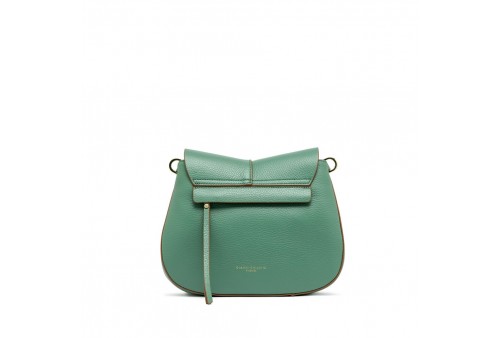 GIANNI CHIARINI HELENA ROUND MENTA. La borsa iconica Helena Round by Gianni Chiarini Firenze è realizzata in pelle martellata e presenta un design strutturato dall'appeal contemporaneo e chic. Dotata di una tracolla che permette una doppia portabilità, questa borsa è pratica e organizzata, con un doppio compartimento interno e una tasca a scomparsa nella parte posteriore.