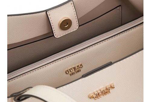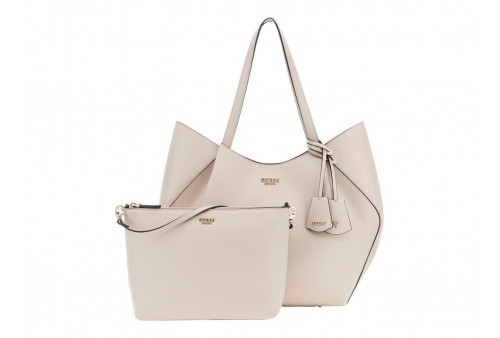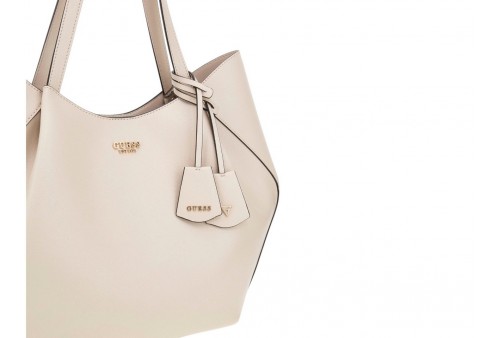 GUESS Shopper Amorette pochette interna. Esterno in simil pelle.Chiusura con bottone. Metalleria color oro pallido. Doppio charm logato removibile alla base del manico. Pochette interna con cerniera lampo. Scritta logo in metallo frontale.