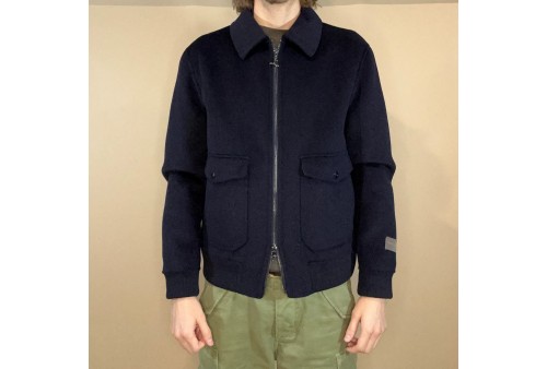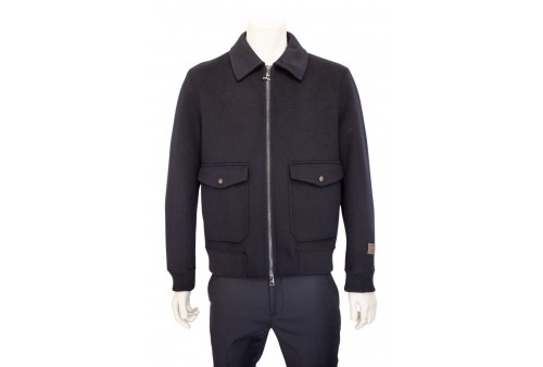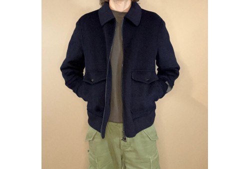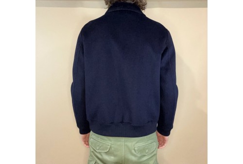 Giacca modello Bomber in lana e cachemere.Vestibilità regular. Chiusura con zip.Collo a camicia.Due tasche con pattina bottoni più invito. cucito a mano
