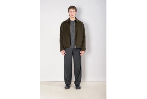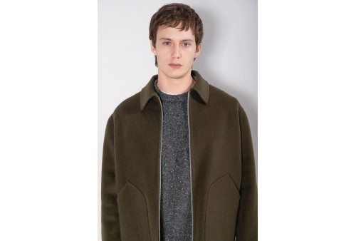 PALTO' GIACCA DANTE DB. Giacca dal design minimale e funzionale, caratterizzata da due tasche sagomate applicate per un utilizzo estetico e pratico essenziale. La chiusura frontale con zip e il colletto a camicia definiscono un profilo pulito e contemporaneo. Sul retro, un taglio centrale dona struttura al capo.