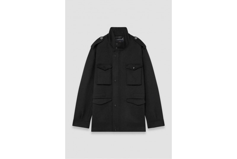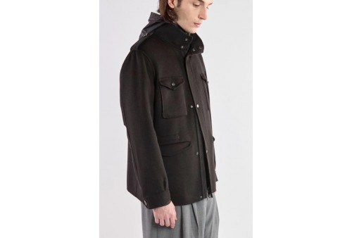 PALTO' GIACCA DUCCIO DB. Field jacket in doppia lana dall'iconico design militare, realizzata per combinare praticità e comfort, presenta due tasche alte con patta e ulteriore ingresso laterale, insieme a due tasche a pozzetto per massimizzare la funzionalità. Quattro passanti per bottoni sulle spalle e pinces chiuse sul retro delle maniche migliorano la mobilità, conferendo alla giacca versatilità tecnica e un'estetica essenziale.