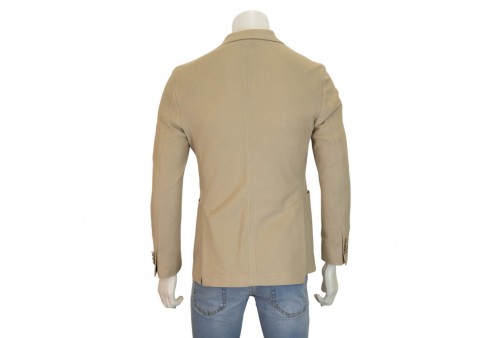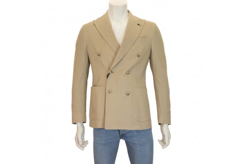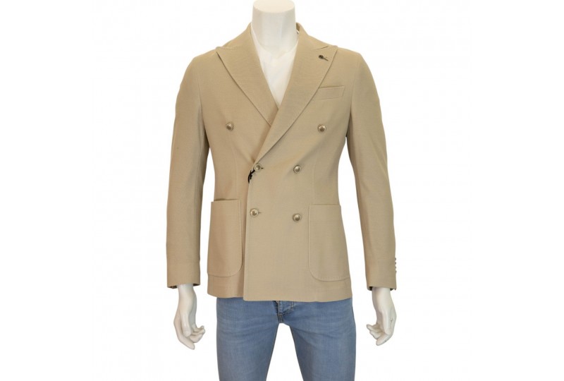PAOLONI GIACCA DOPPIOPETTO IN JERSEY. Giacca doppiopetto realizzata in jearsy di cotone. Colletto a lancia. Bottoni a contrasto. Tasche frontali. Spacchetti sul retro. COLORE: BEIGE