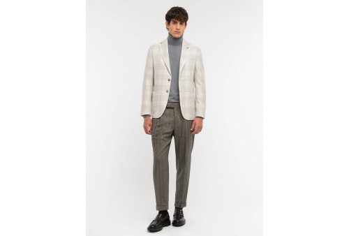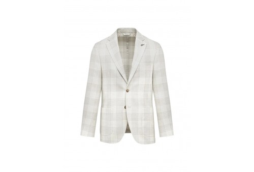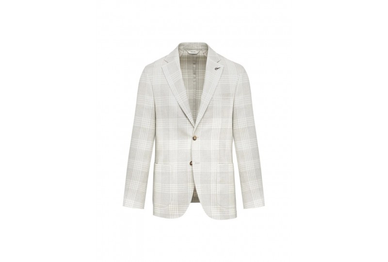 PAOLONI Giacca sfoderata macrocheck misto lana seta. Giacca sfoderata chiusura due bottoni, due tasche a toppa e un taschino frontali, quattro bottoni ai polsi, spacchi laterali sul retro, finiture con impunture A.M.F. Macrocheck misto lana seta. COLORE: GRIGIO