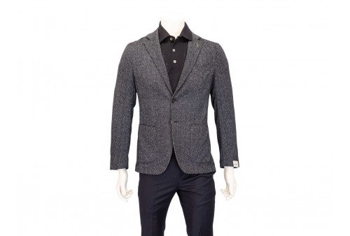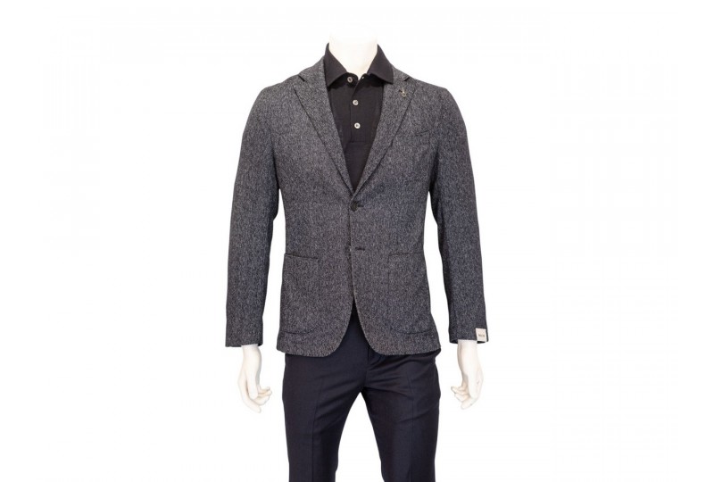 PAOLONI GIACCA TINTA JEANS. Giacca chiusura due bottoni , rever a lancia, due tasche a toppa e un taschino frontali, spacchi laterali, quattro bottoni ai polsi, finiture con impunture. COLORE: jeans
