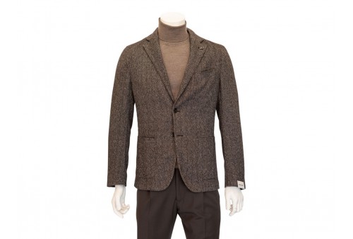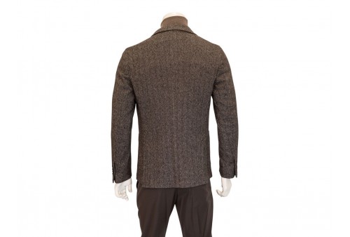 PAOLONI GIACCA TINTA marrone. Giacca chiusura due bottoni , rever a lancia, due tasche a toppa e un taschino frontali, spacchi laterali, quattro bottoni ai polsi, finiture con impunture. COLORE: marrone