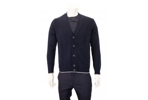 MAGAZZINI RICAMBI CARDIGAN FIN 7. Cardigan realizzato in lana, scollo a V, chiusura a 5 bottoni. Profili a costine. colore: blu