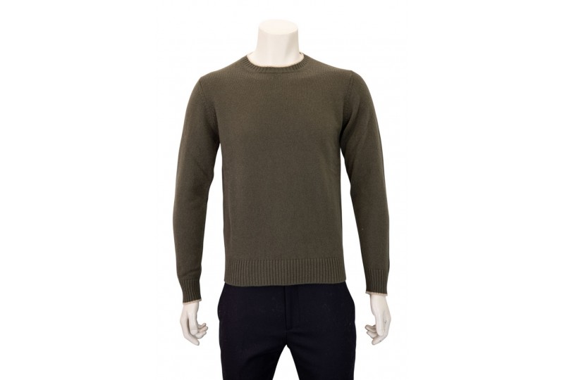 MAGAZZINO RICAMBI GIROCOLLO BORDINO VELA F7. Maglia girocollo realizzata in lana finezza 7, caratterizzato da bordino a contrasto . Profili a costine. colore: verde