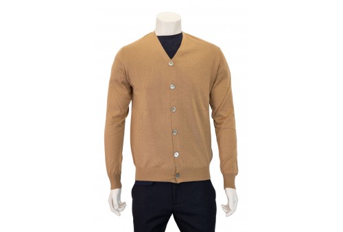 OUTFIT cardigan in lana. Cardigan scollo a V realizzato in lana. Profili a costine. Chiusura a 6 bottoni sul davanti. colore: camel