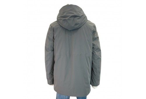 DUNO GIACCONE FANGO CAPALBIO. Giacca in misto poliammide e elastane con cappuccio, imbottito e trapuntato all'interno. Leggero, traspirante, isolante termico e impermeabile.