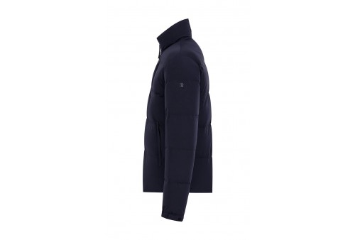 DUNO PIUMINO AYRTON LICOSA. Piumino corto packable in tessuto tecnico superlight bi-stretch caratterizzato da dettagli in contrasto di colore nella parte posteriore del collo e nel sotto zip con logo a rilievo. Chiusura con zip water-resistant al centro davanti e alle tasche laterali. Collo in piedi e fondo manica regolabile con automatico. Il capo può essere contenuto in un marsupio, ripiegandolo nell'apposita tasca interna.