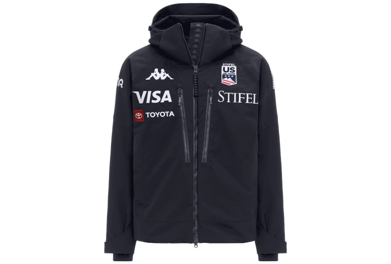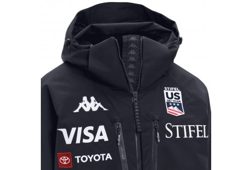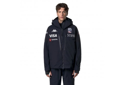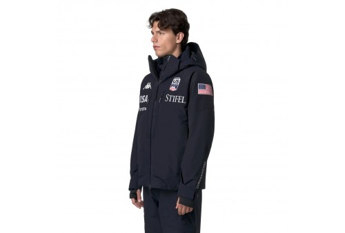 KAPPA 6CENTO 602C US Giacca da sci imbottita impermeabile da uomo. Giacca imbottita da uomo realizzata in tessuto stretch meccanico a 2 strati, offre una protezione ottimale grazie alla tecnologia WATERPROOF PROTECTION 20.000 mm H2O e alla BREATHABILITY 20.000 g/m²/24h, completata da trattamento idrorepellente PFC-Free. L’imbottitura da 180 g assicura calore leggero senza appesantire. Il taglio regular fit garantisce libertà di movimento, mentre i rinforzi su spalle e fondo aumentano la resistenza e la protezione dagli agenti atmosferici. Funzionalità aggiuntive includono cappuccio staccabile, tasche con patta e chiusura zip, zip di ventilazione, ghetta interna, polsini elasticizzati, cuciture termonastrate e sistemi di regolazione personalizzata. Dettagli distintivi includono logo Omini e personalizzazioni US Ski and Snowboard Team.