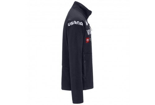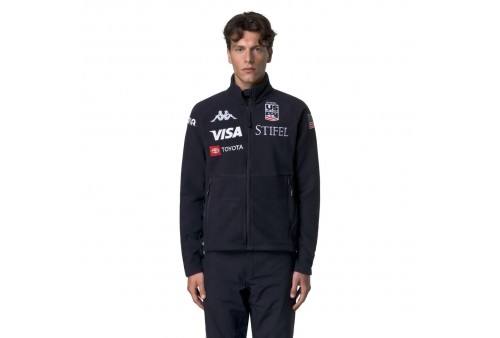 KAPPA 6CENTO 687C US BLU BARITONE. Giacca in pile blu da uomo per sci e snowboard. Realizzato in tessuto pile antipilling in poliestere con inserti in tessuto stretch per maggiore libertà di movimento e comfort. Slim fit per una vestibilità aderente e funzionale. Dotato di apertura frontale con zip intera e tasche con zip per praticità e sicurezza degli oggetti personali. Dettagli distintivi includono logo Omini e personalizzazioni US Ski and Snowboard Team.