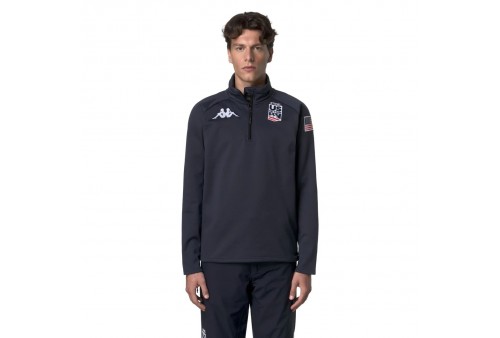 KAPPA pile 821 US 8CENTO BLU BARITONE. Micropile unisex in tessuto tecnico garzato internamente, che assicura calore e comfort a contatto con la pelle. Slim fit per una vestibilità aderente e funzionale. Dotato di apertura frontale con mezza zip. Dettagli distintivi includono logo Omini e personalizzazioni US Ski and Snowboard Team.Cardigan in pile unisex slim fit con mezza cerniera