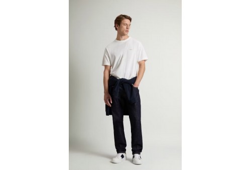 WOOLRICH T-SHIRT COTONE CFWOTE2012MRUT5334/8270 WHITE. Questa t-shirt in puro cotone organico propone una lettura essenziale del capo casual per eccellenza. Il logo stampato sul petto firma il modello con discrezione, richiamando i codici heritage del brand. La costruzione con girocollo mantiene una linea pulita e bilanciata, pensata per l’uso quotidiano e per abbinamenti versatili. Un capo semplice e funzionale, definito da materiali naturali e da un design sobrio e senza tempo.