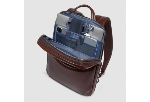 PIQUADRO Zaino uomo personalizzabile porta pc 14" . Zaino uomo in pelle personalizzabile porta PC e porta iPad® con tasca per AirPods®, protezioni antiurto e RFID, espandibile