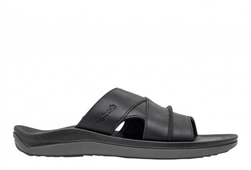 REFRESH uomo ciabatta 172554 S.C. NEGRO. Ciabatta uomo mono fascia realizzata in materiale che imita la pelle. Modello a fasce incrociate con comodo sottopiede imbottito. Spessa suola in gomma antiscivolo. Questo modello ha ottenuto la certificazione vegana dall´organizzazione mondiale PETA (Organizzazione per i diritti degli animali).