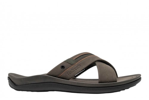 REFRESH uomo ciabatta 172619 S.C. KAKI. Ciabatta uomo con fasce incrociate realizzata in materiale che imita la pelle. Modello a fasce incrociate con comodo sottopiede imbottito. Spessa suola in gomma antiscivolo. Questo modello ha ottenuto la certificazione vegana dall´organizzazione mondiale PETA (Organizzazione per i diritti degli animali).
