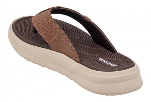 REFRESH uomo infradito 172762 S.C. CAMEL .Sandali da uomo realizzati con un materiale che imita la pelle con il logo del marchio inciso sul lato. Suola spessa in gomma antiscivolo. Questo modello è stato certificato vegano dall'organizzazione globale PETA (Animal Rights Organization).