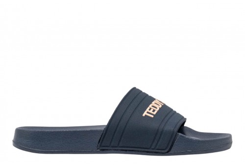 TEDDY SMITH UOMO CIABATTA 120099 NAVY. Ciabatta con fascia realizzata in PU con logo a contrasto.
