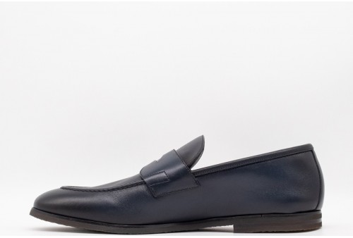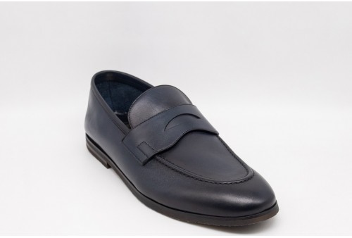 BARRETT MOCASSINO CON MASCHERINA IN PELLE BOTTOLATA. Mocassino con mascherina realizzata in morbida pelle bottolata. Costruzione Blake. Fondo in gomma. COLORE: blu