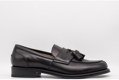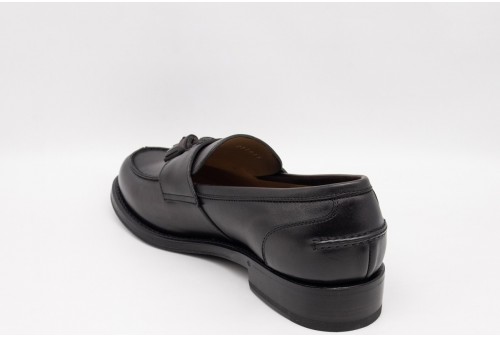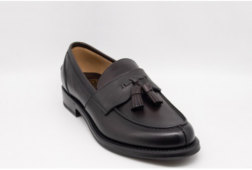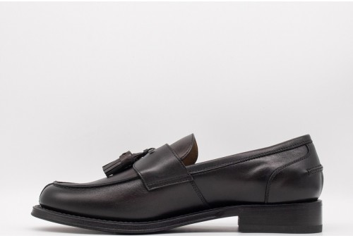 BARRETT MOCASSINO CON NAPPINE IN VITELLO CAFFE'. Iconico mocassino con nappine e vaschetta in pelle. Tomaia in vitello, la suola è in cuoio.